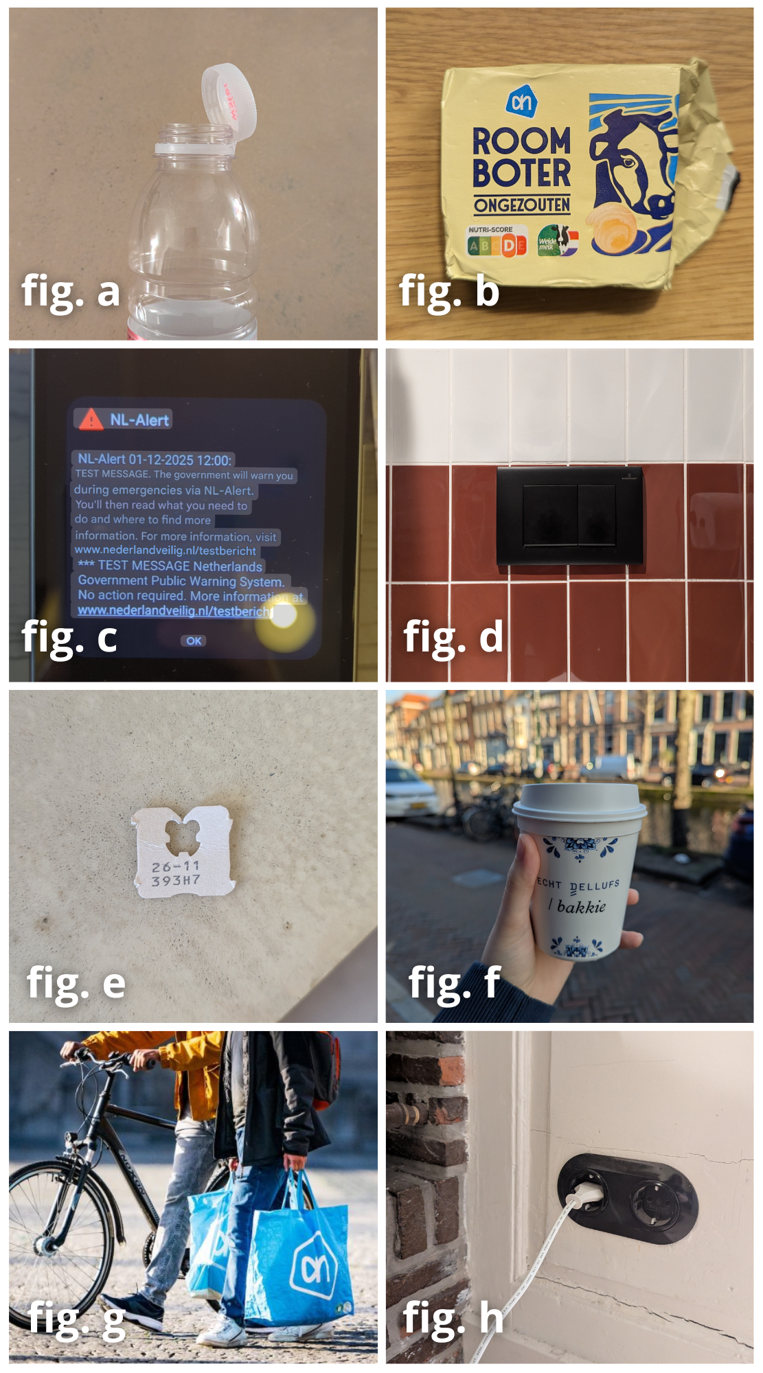 -sustainability is BIG here, with bread bag tabs being made of cardboard instead of plastic (fig. e) and a recent city initiative for reusable coffee to-go cups (fig. f) - the coffee cup is €1, and a lid is an additional €1 (the cup can be returned for a refund if you wish, the lid cannot because they found in early trials that a large number of people chew on their lids???)