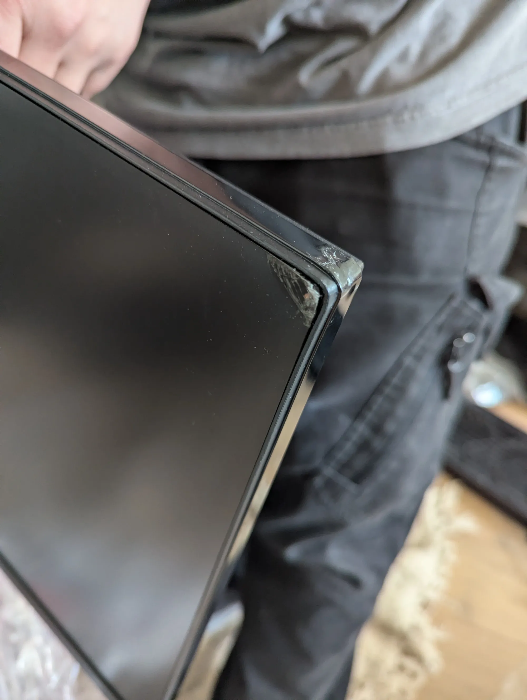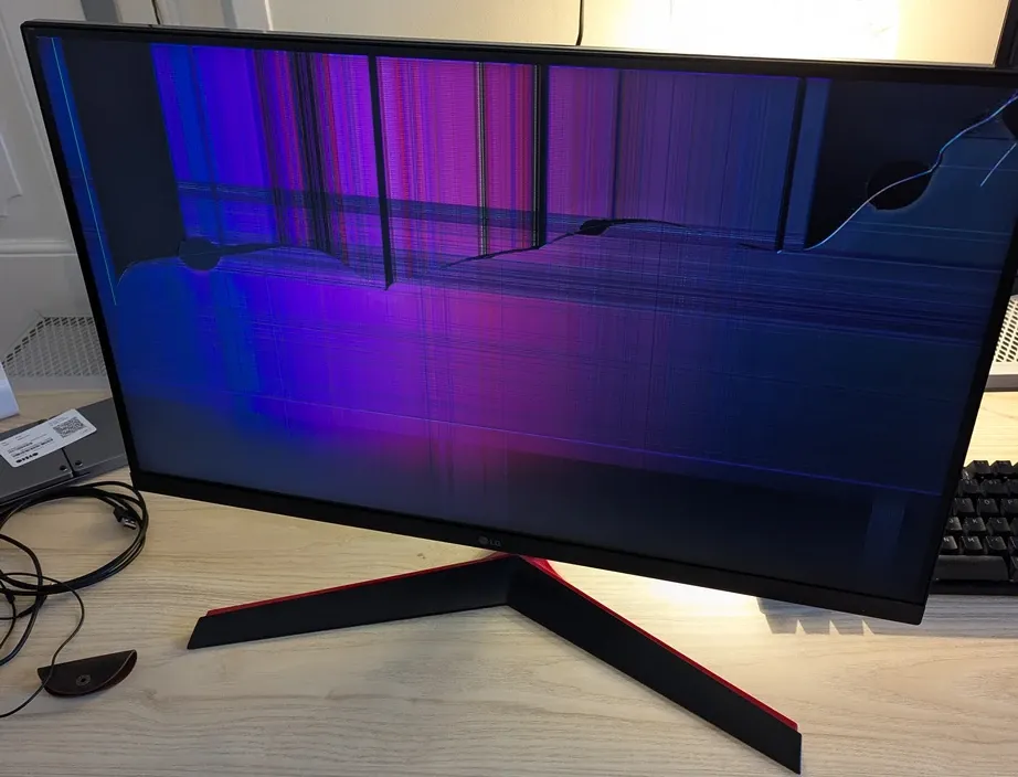 We pulled out the monitor first, and it looks damaged, which sucks, but understandably is the most fragile part.